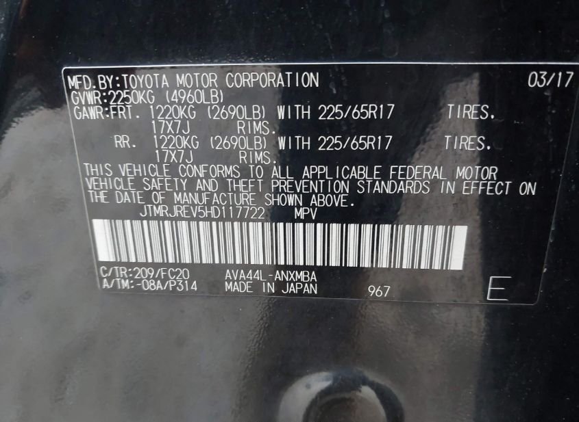 - VIN: JTMRJREV5HD117722