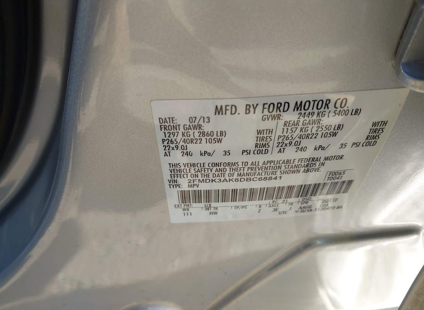 - VIN: 2FMDK3AK6DBC68841