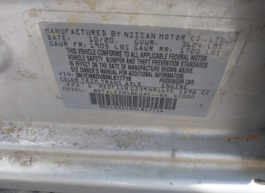 - VIN: 3N1CN8DV8ML817716