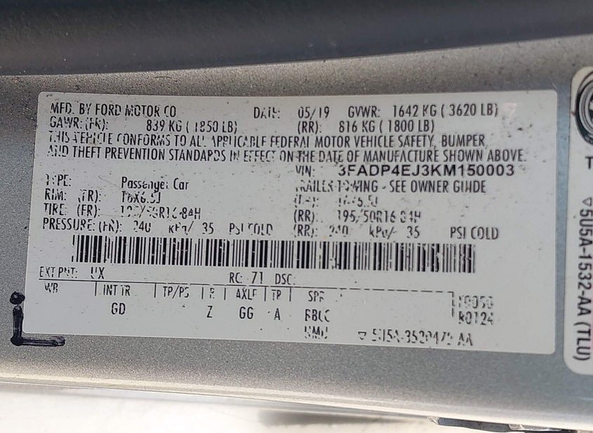 - VIN: 3FADP4EJ3KM150003
