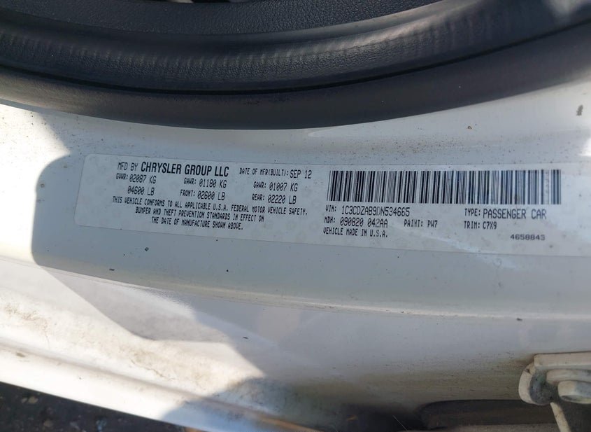 - VIN: 1C3CDZAB9DN534665