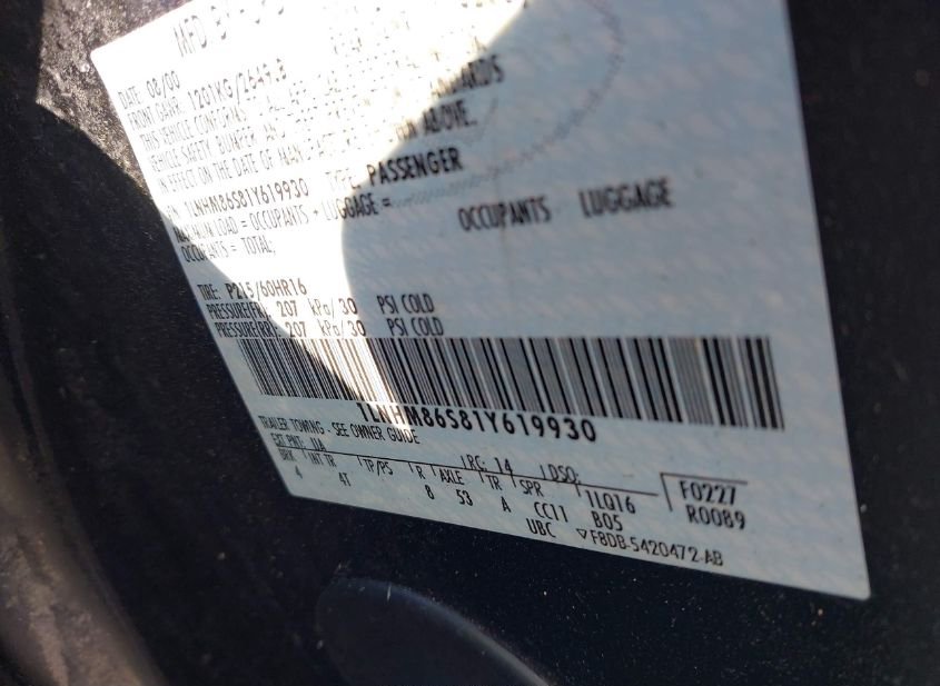 - VIN: 1LNHM86S81Y619930