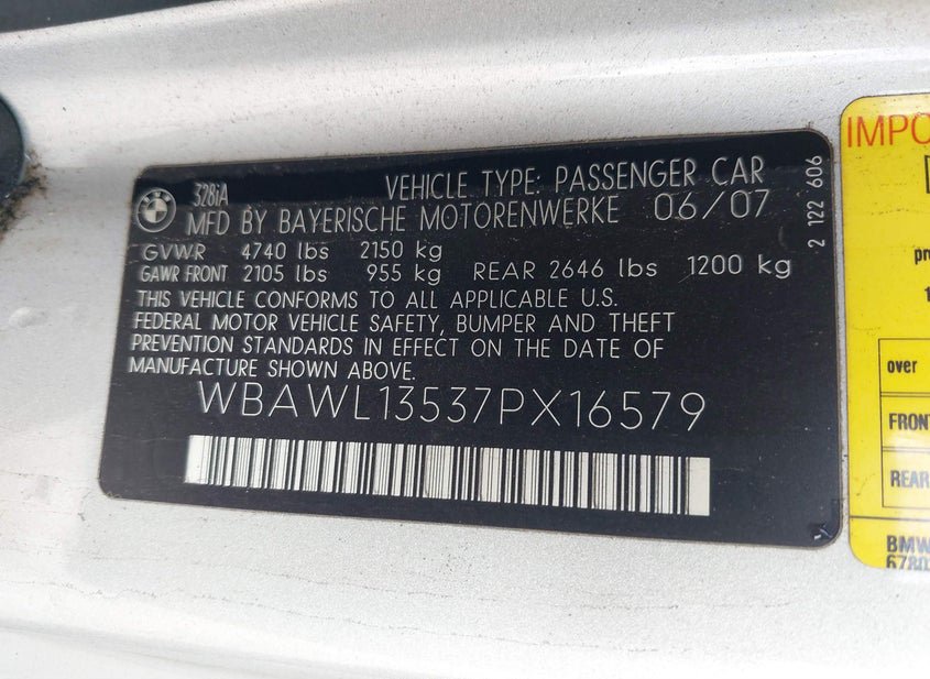 - VIN: WBAWL13537PX16579