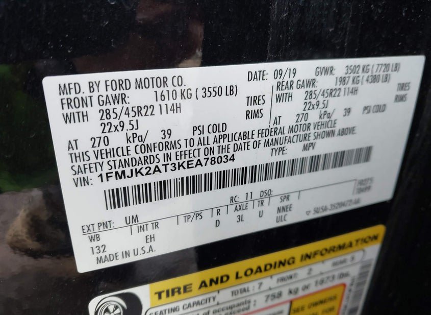 - VIN: 1FMJK2AT3KEA78034