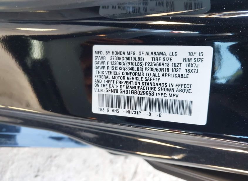 - VIN: 5FNRL5H91GB029663