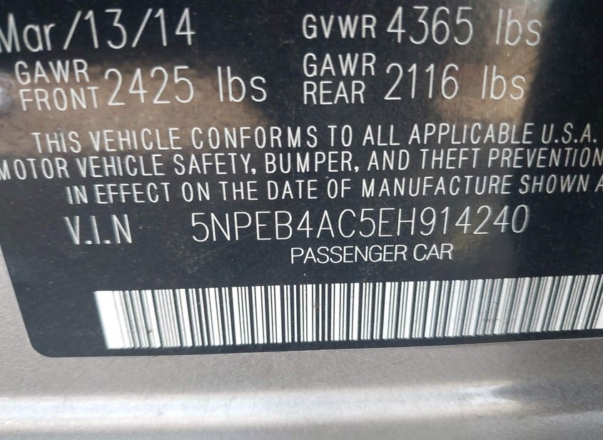 - VIN: 5NPEB4AC5EH914240