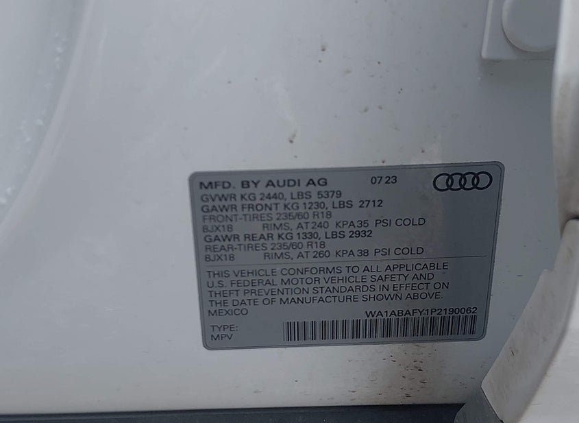 - VIN: WA1ABAFY1P2190062