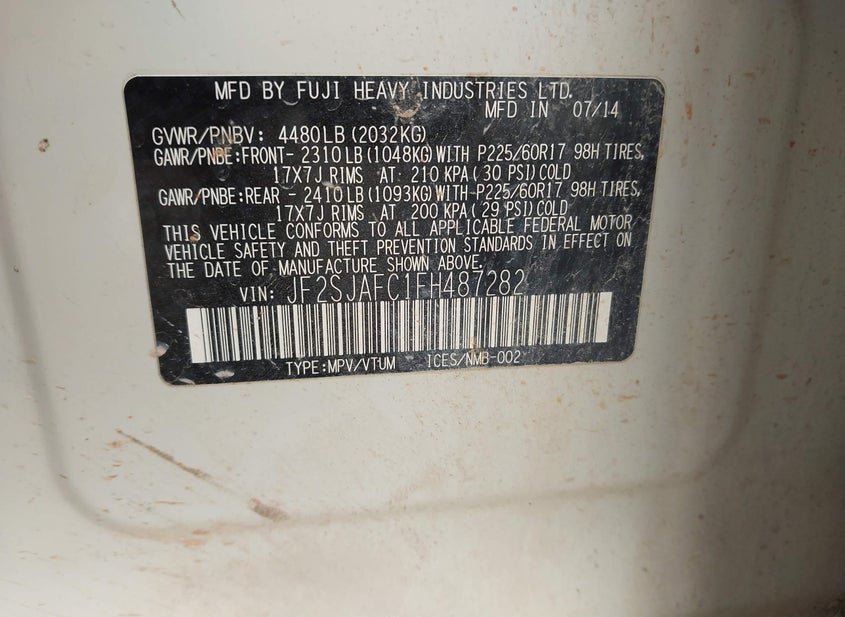 - VIN: JF2SJAFC1FH487282