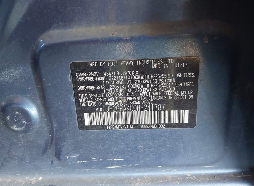 - VIN: JF2GPAKC0HH241787