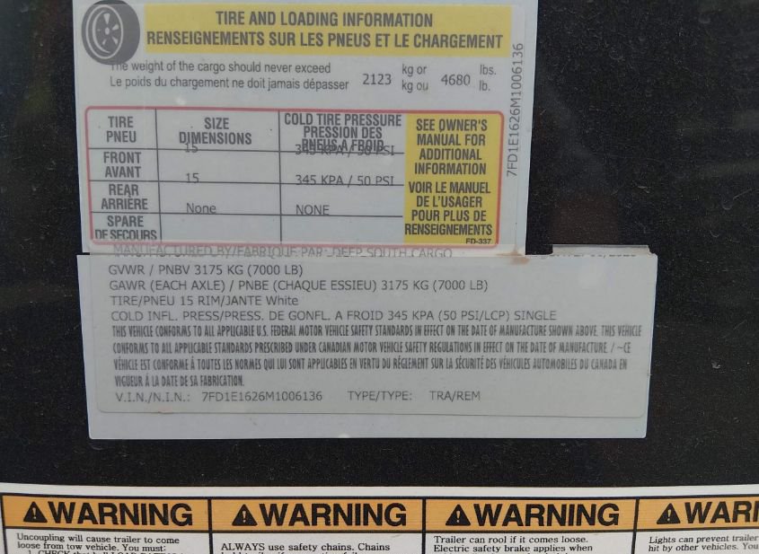 - VIN: 7FD1E1626M1006136