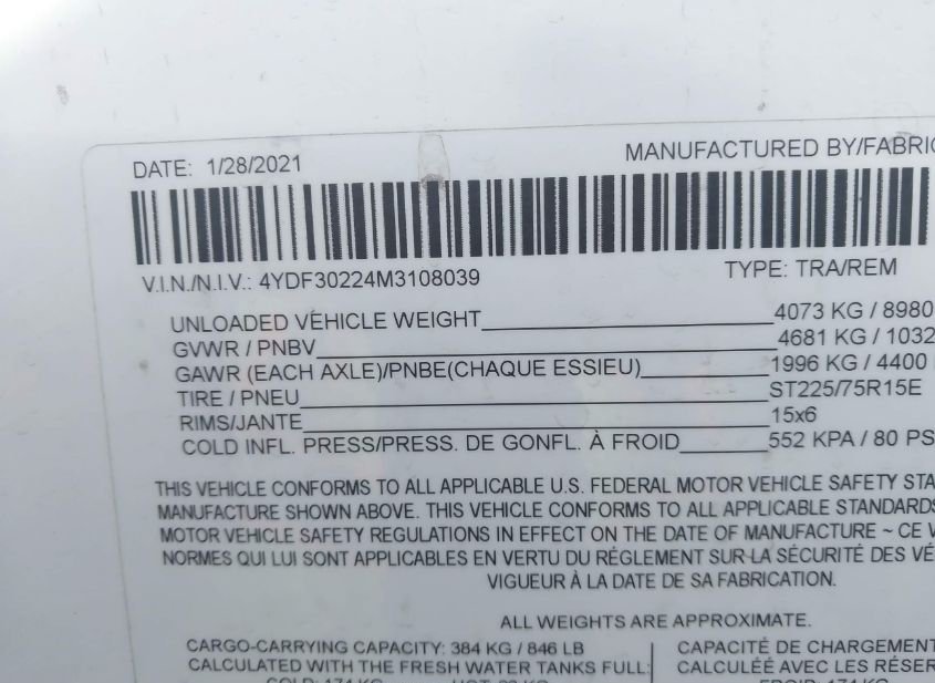 - VIN: 4YDF30224M3108039