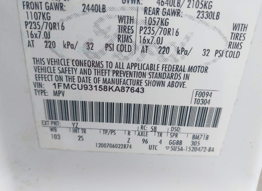 - VIN: 1FMCU93158KA87643