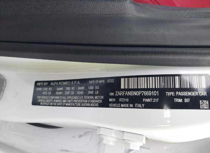 - Название лота: 2023 ALFA ROMEO GIULIA VELOCE AWD