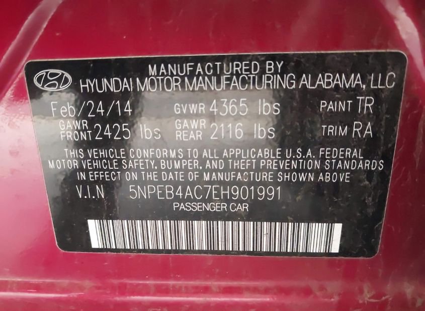 - VIN: 5NPEB4AC7EH901991