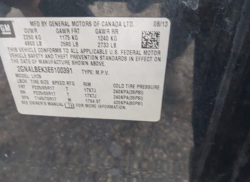 - VIN: 2GNALBEK3E6100391