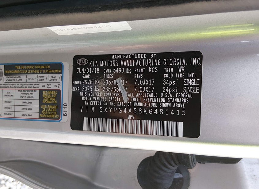 - VIN: 5XYPG4A58KG481415
