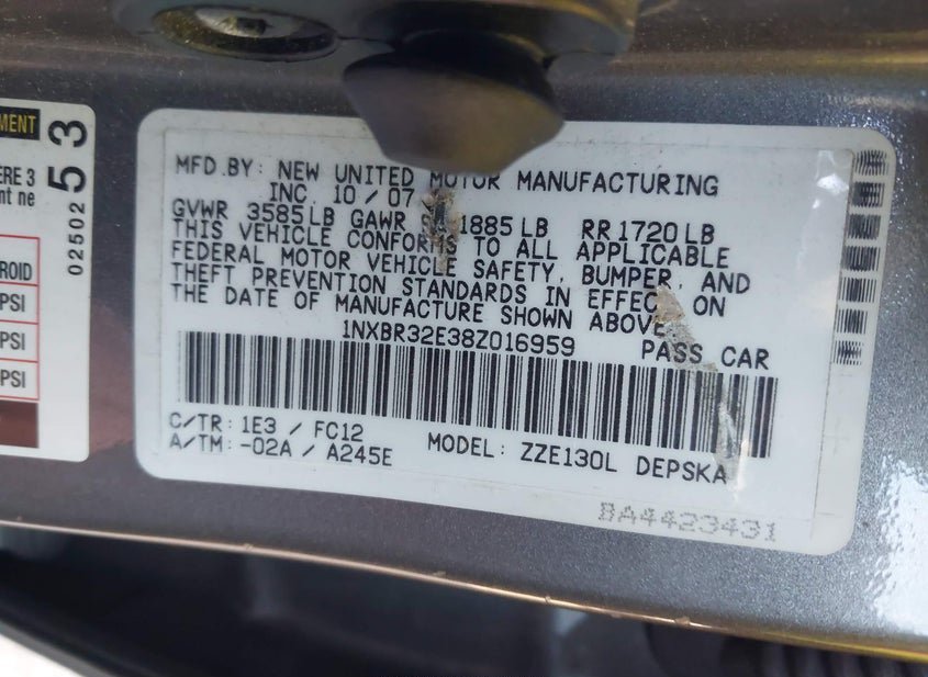 - VIN: 1NXBR32E38Z016959