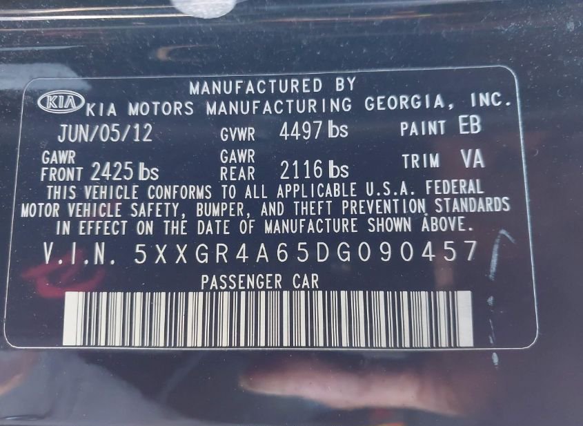 - VIN: 5XXGR4A65DG090457