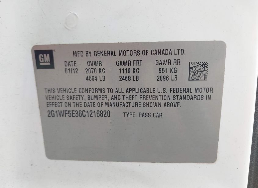 - VIN: 2G1WF5E36C1216820