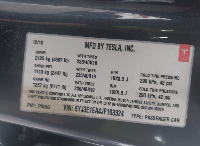 - VIN: 5YJ3E1EA4JF163324
