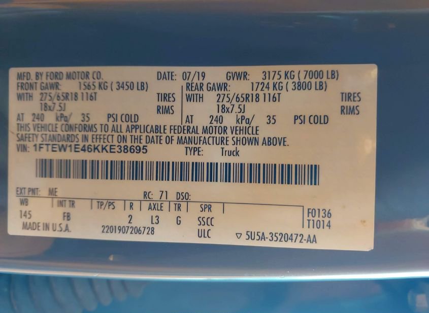 - VIN: 1FTEW1E46KKE38695