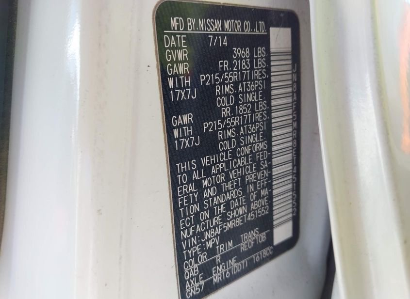 - VIN: JN8AF5MR8ET451552