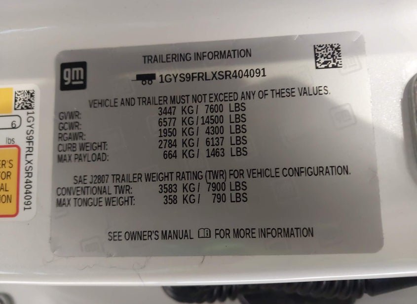 - VIN: 1GYS9FRLXSR404091