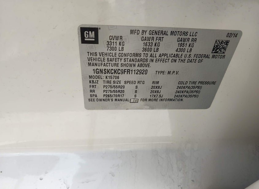 - VIN: 1GNSKCKC9FR112920