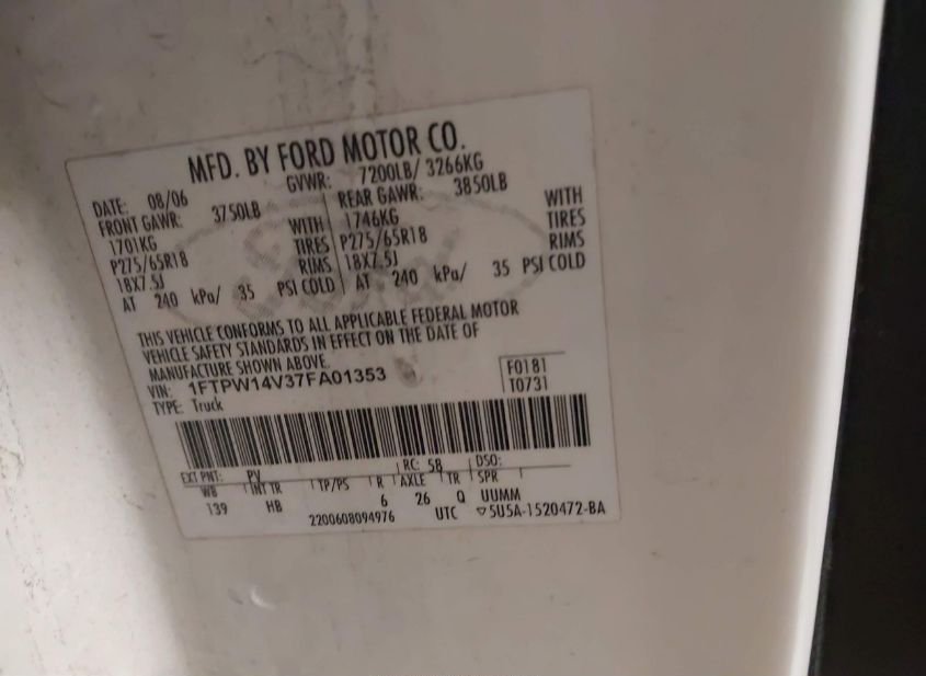 - VIN: 1FTPW14V37FA01353