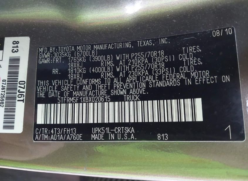 - VIN: 5TFRM5F1XBX020615
