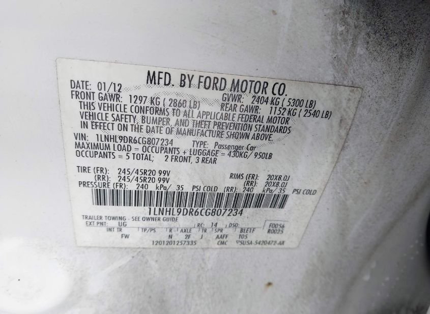 - VIN: 1LNHL9DR6CG807234
