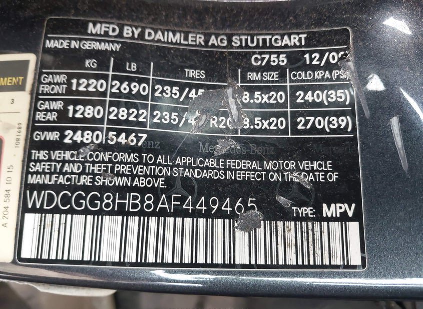 - VIN: WDCGG8HB8AF449465