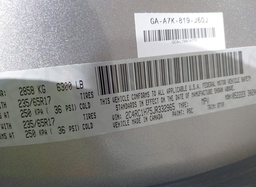 - VIN: 2C4RC1H75JR332965