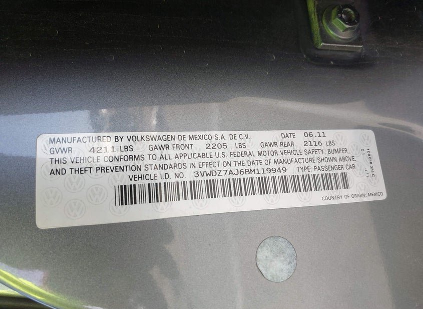 - VIN: 3VWDZ7AJ6BM119949