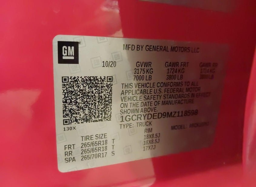 - VIN: 1GCRYDED9MZ118598