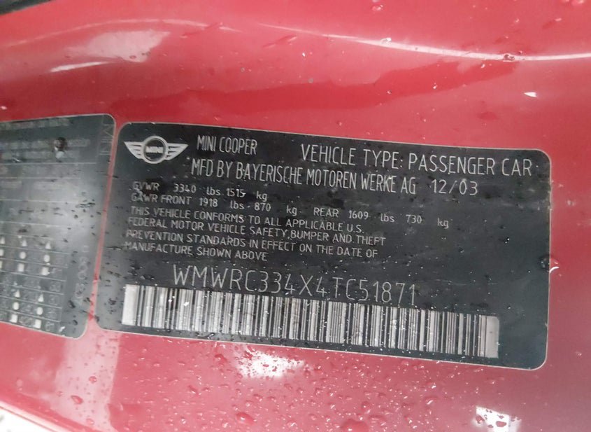 - VIN: WMWRC334X4TC51871