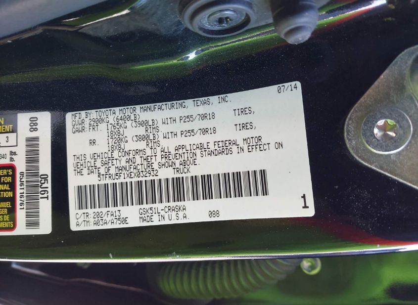 - VIN: 5TFRU5F1XEX032932