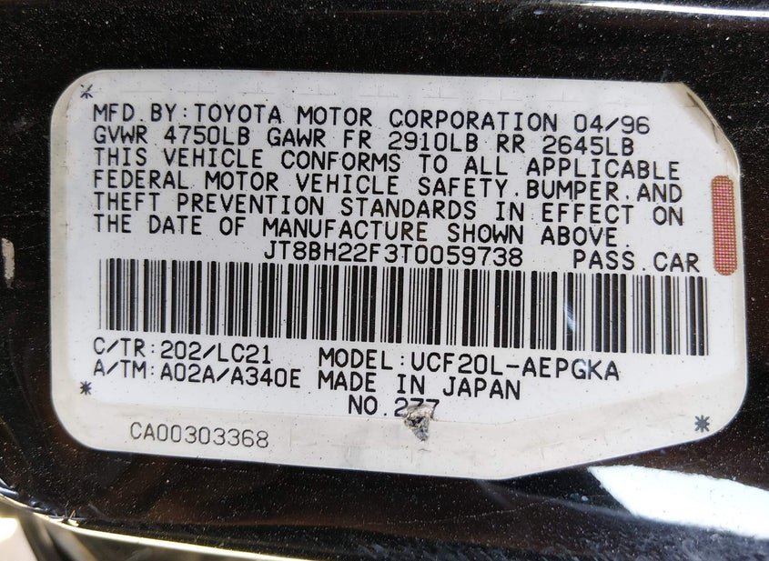 - VIN: JT8BH22F3T0059738