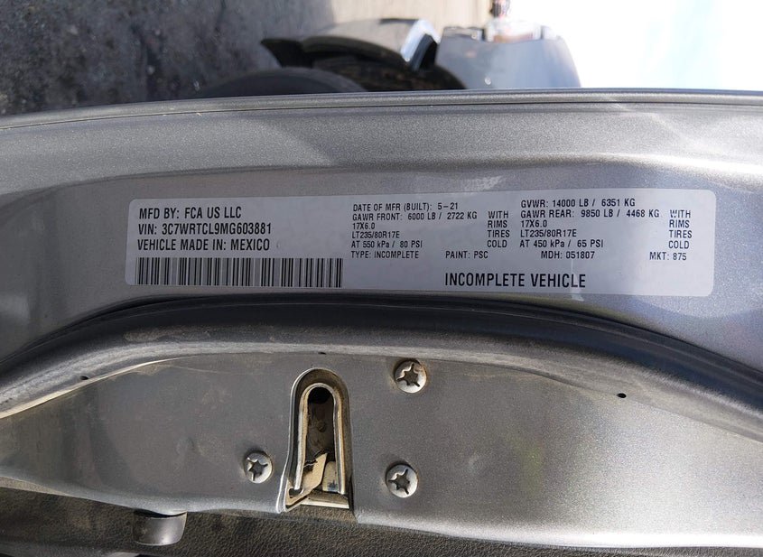 - VIN: 3C7WRTCL9MG603881