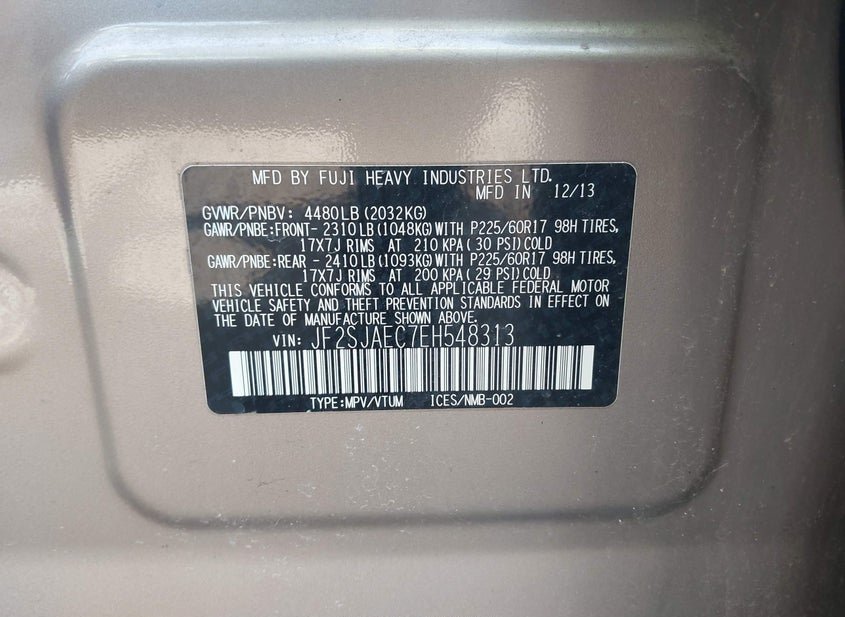 - VIN: JF2SJAEC7EH548313