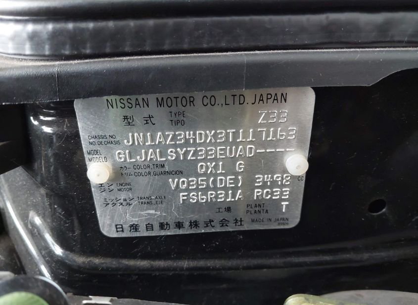 - VIN: JN1AZ34DX3T117163