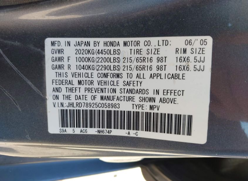 - VIN: JHLRD78925C058983