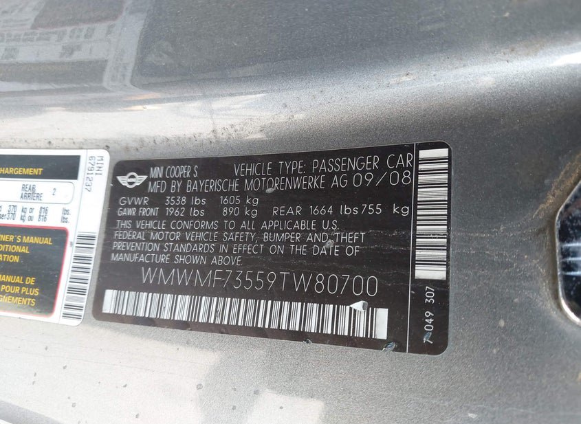 - VIN: WMWMF73559TW80700