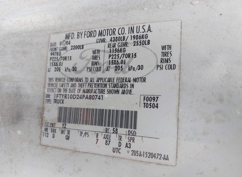 - VIN: 1FTYR10D24PA80741