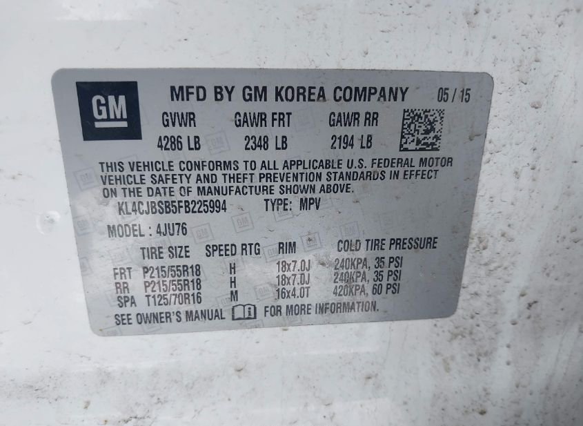 - VIN: KL4CJBSB5FB225994