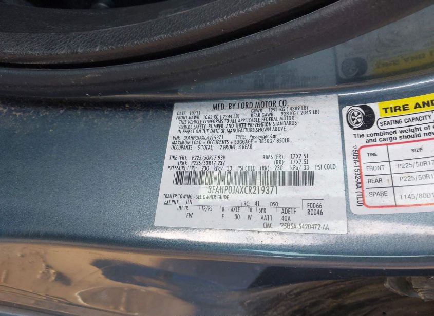 - VIN: 3FAHP0JAXCR219371