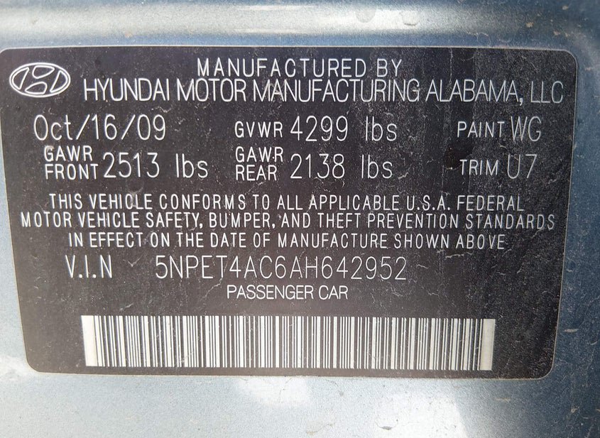 - VIN: 5NPET4AC6AH642952