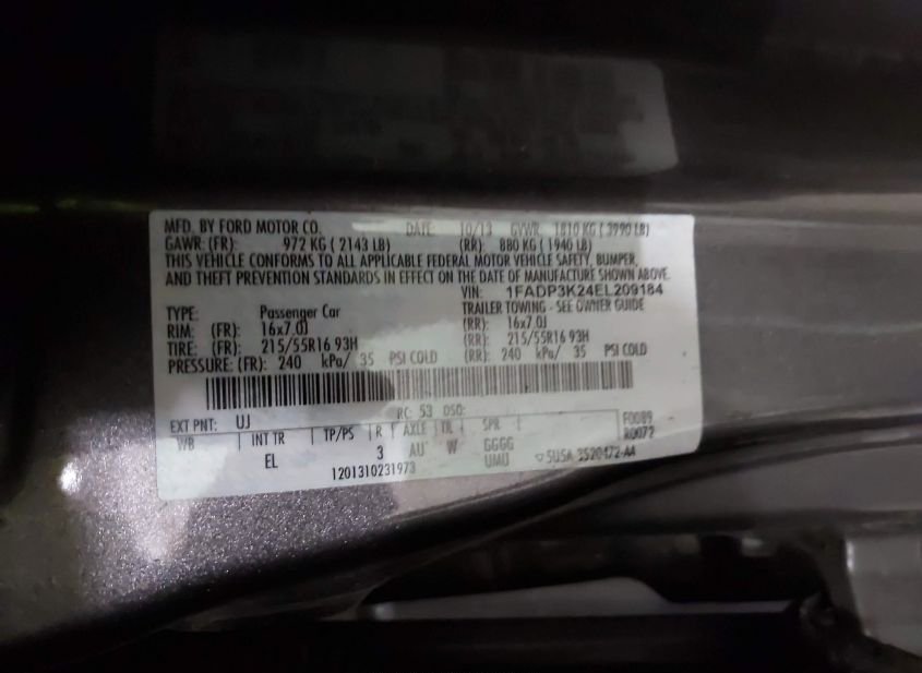 - VIN: 1FADP3K24EL209184