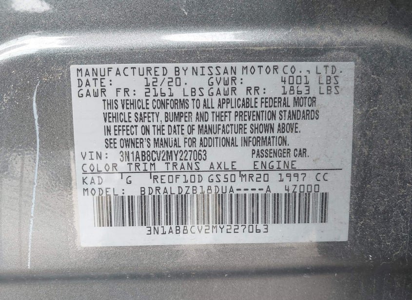 - VIN: 3N1AB8CV2MY227063