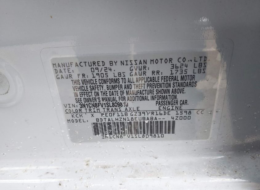 - VIN: 3N1CN8FV1SL809810